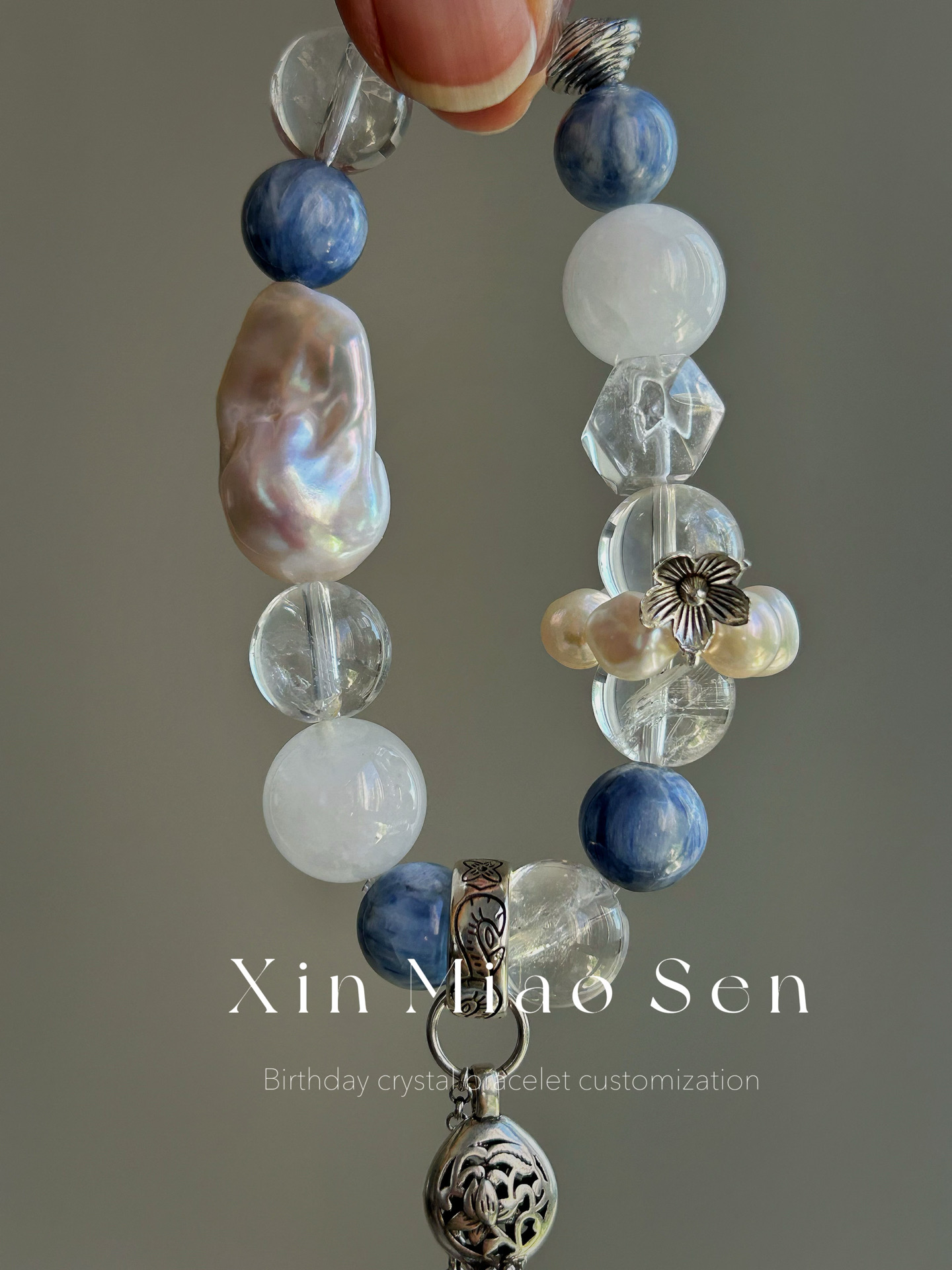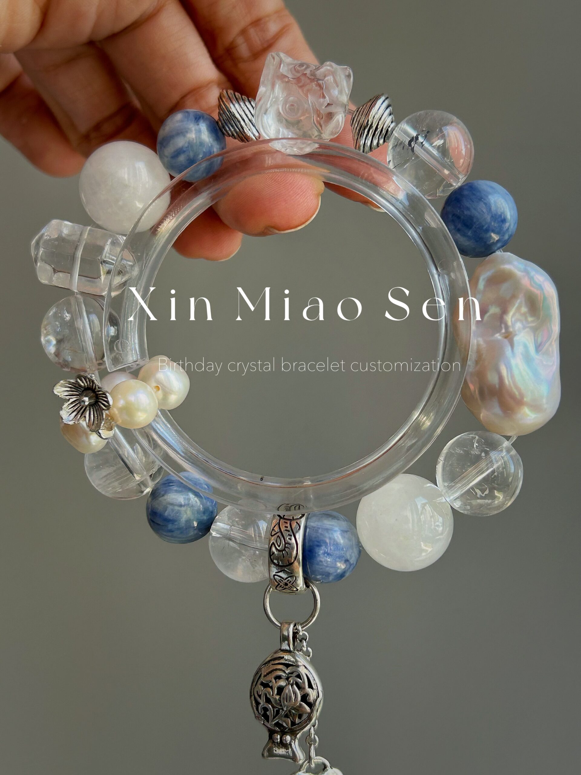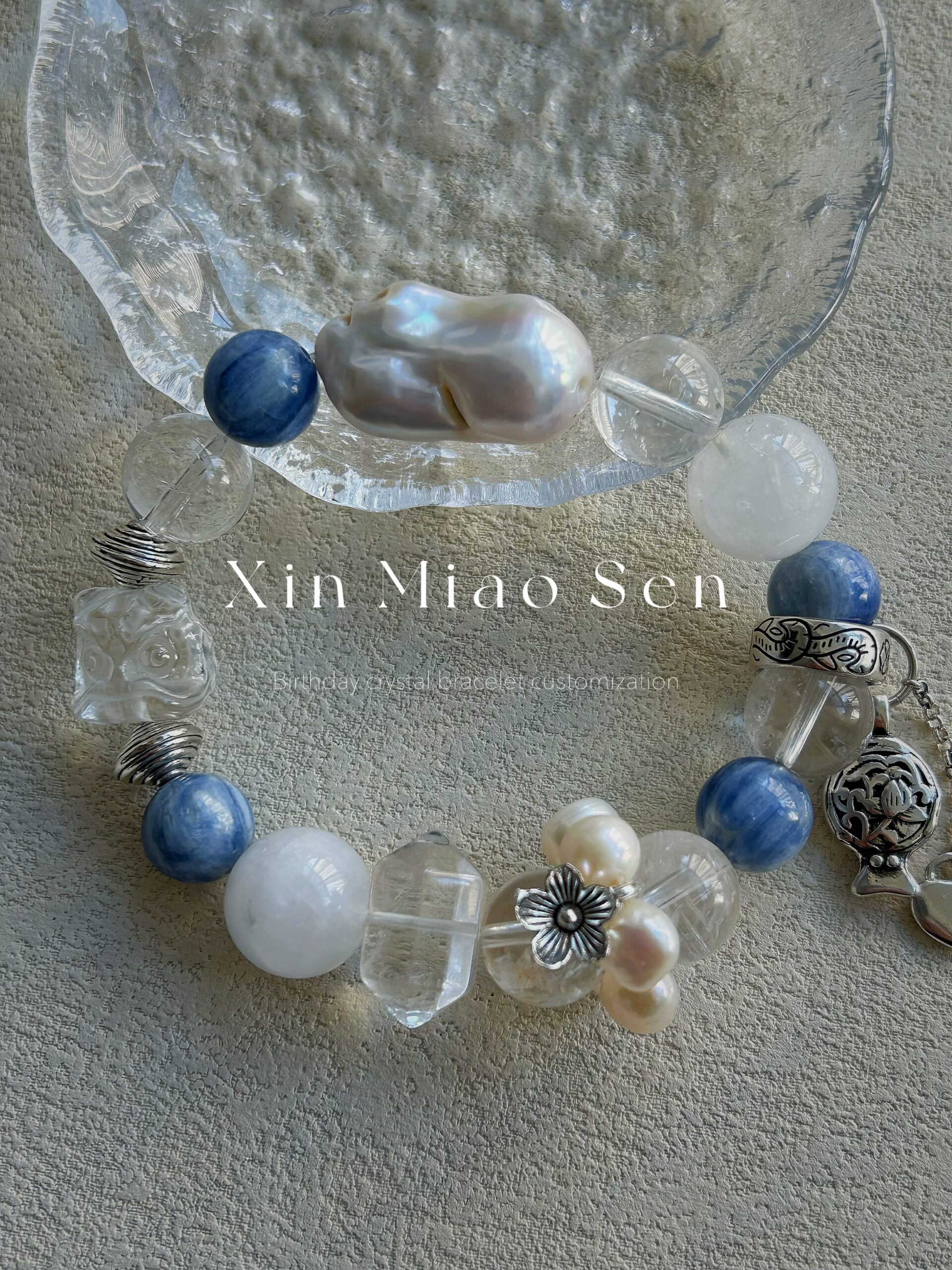 This bracelet uses high-quality crystals such as Designed with Baroque, Sapphires, White crystals, Rings, Various silver accessories.