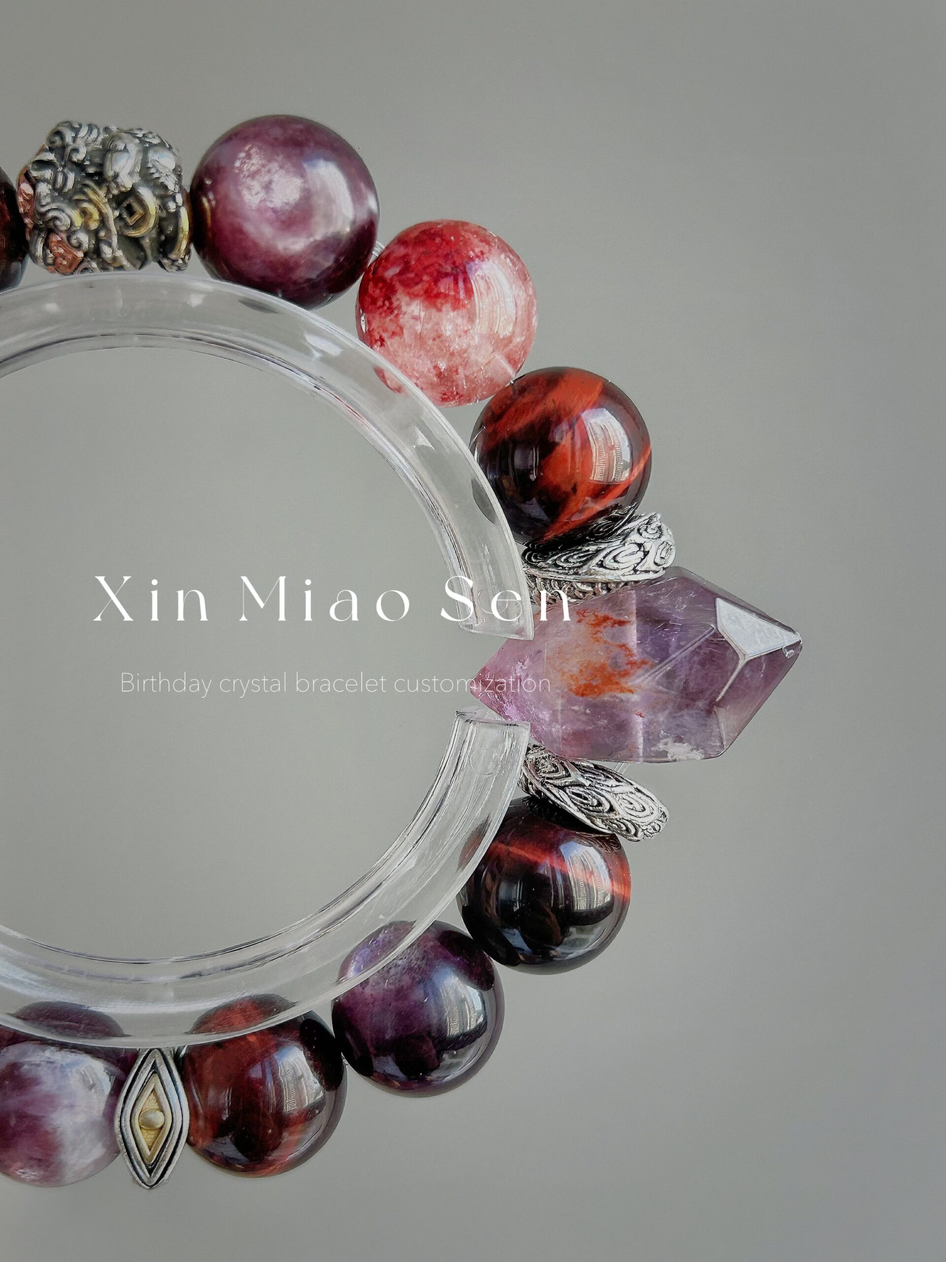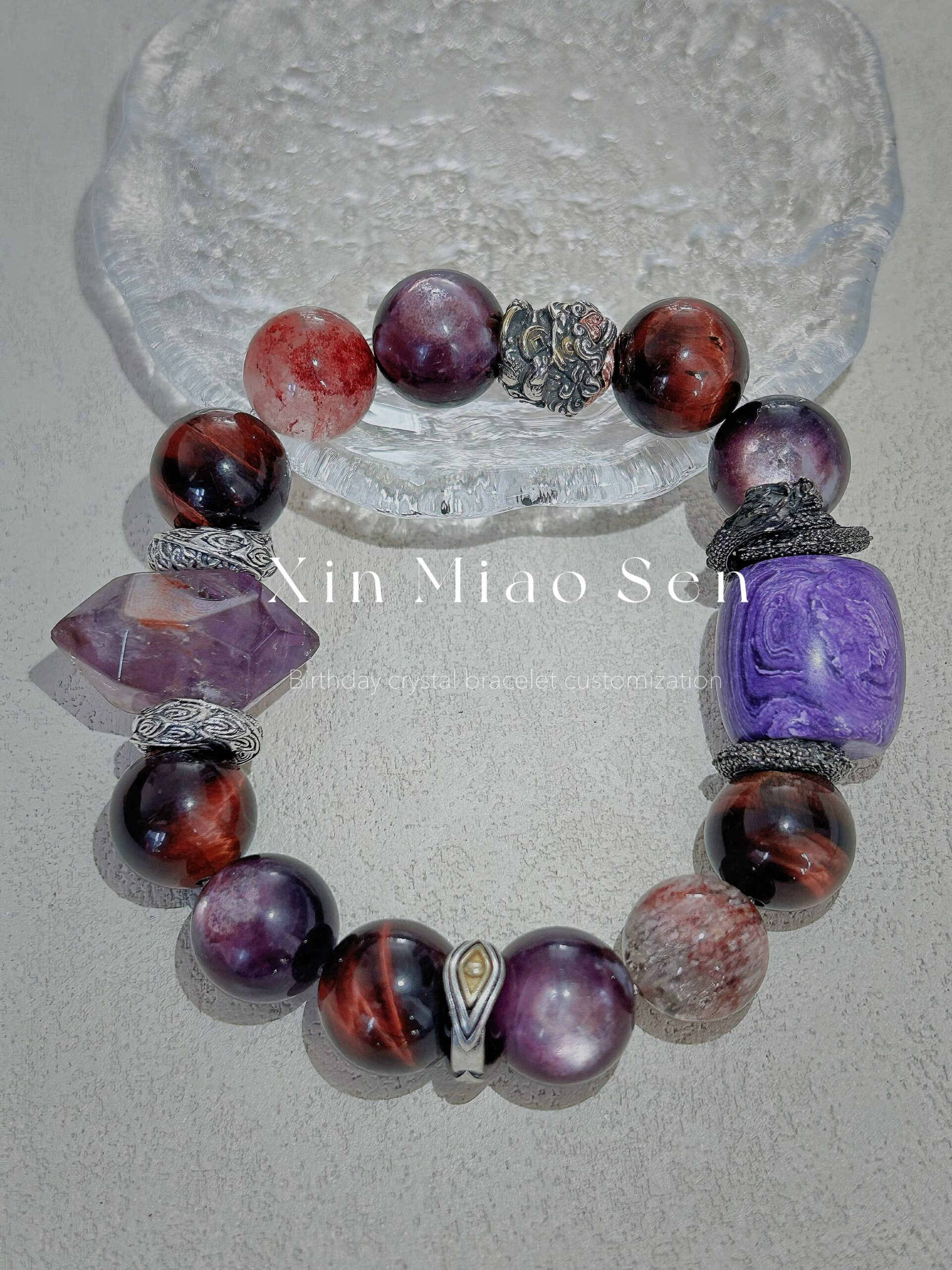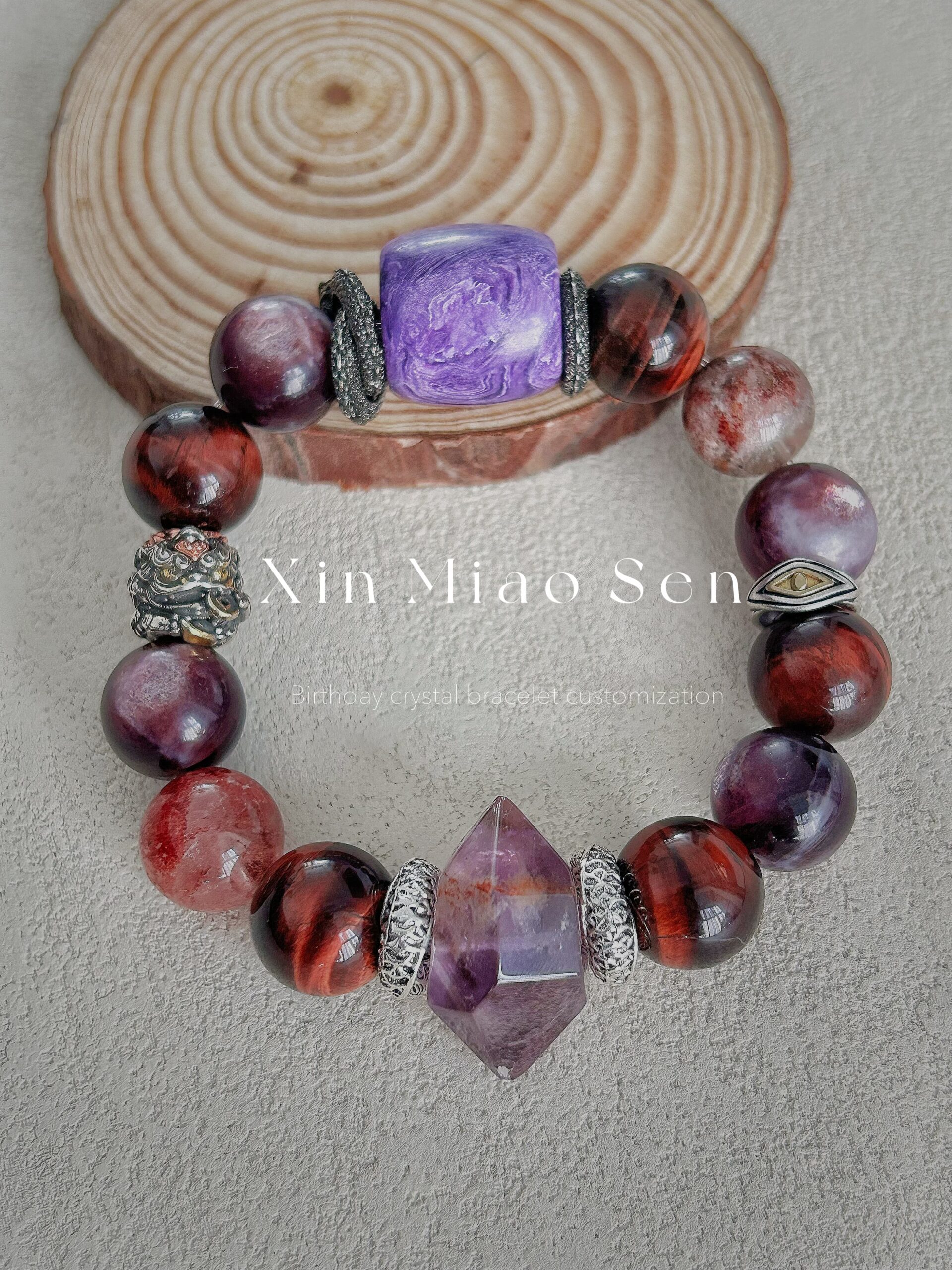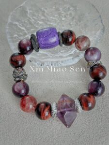 This bracelet uses high-quality crystals such as Designed with Amethyst, Red tiger eye, Red gum flower, Chilin silver jewelry, and other Silver jewelry.