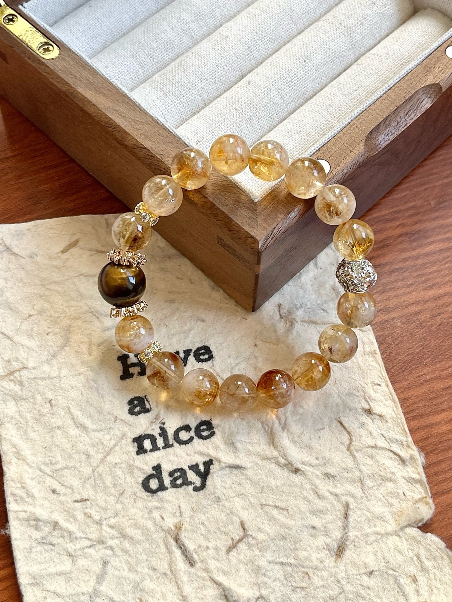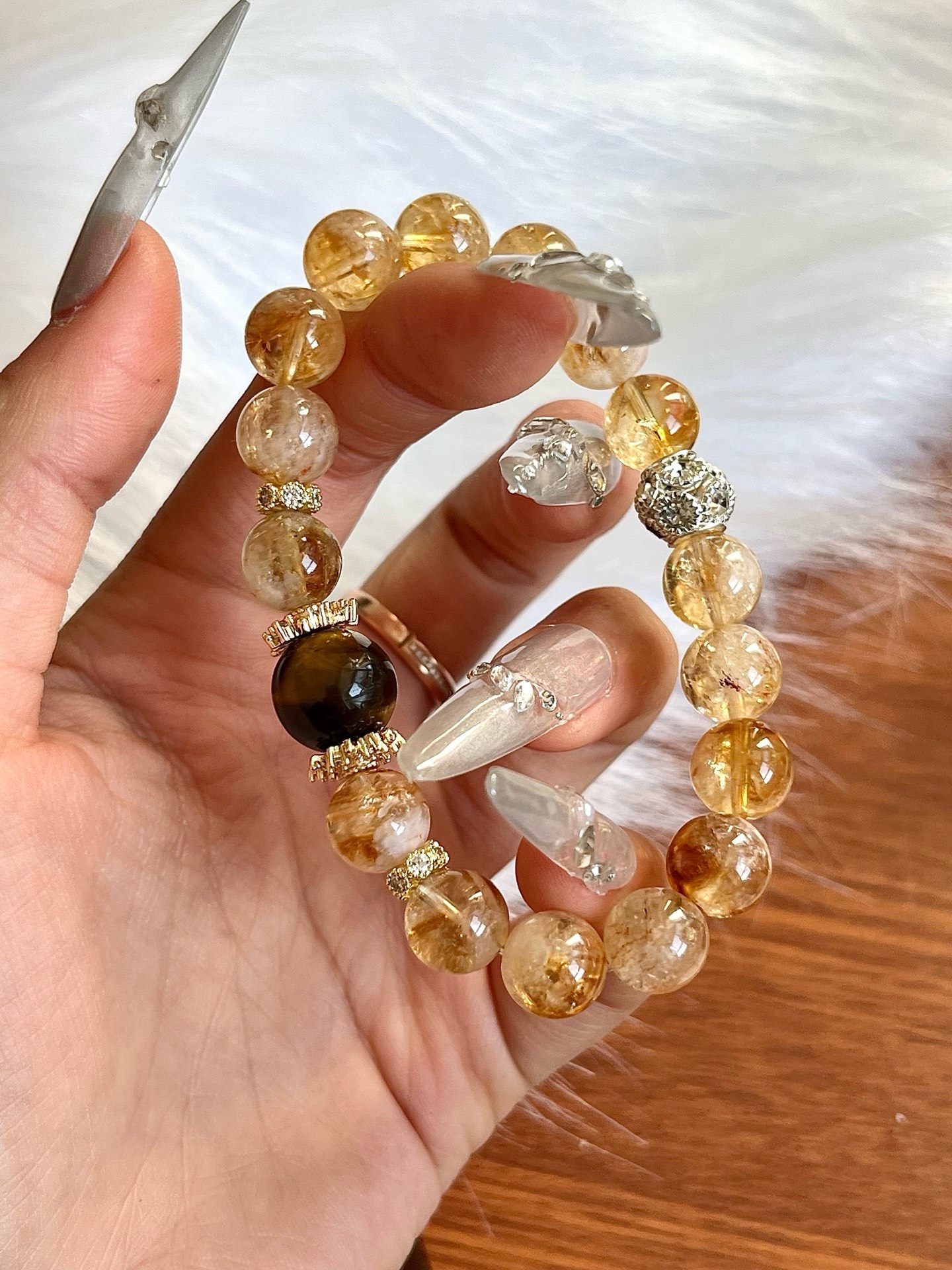 Diameter of the beads: 8mm(citrine) & 12mm (tiger’s eye)