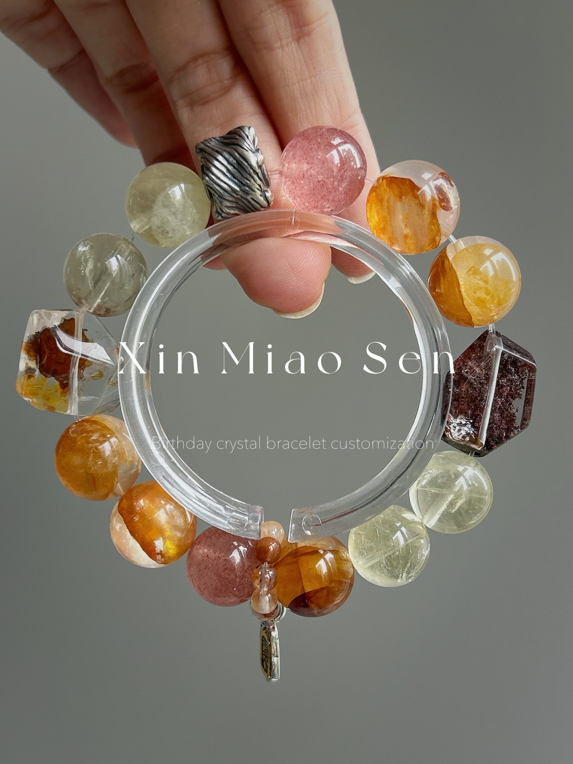 This bracelet uses high-quality crystals such as Designed with Yellow crystal, Ghost sugar cube, Lemon crystal, Yellow jelly flower, Ring Accessories, Silver Jewelry.