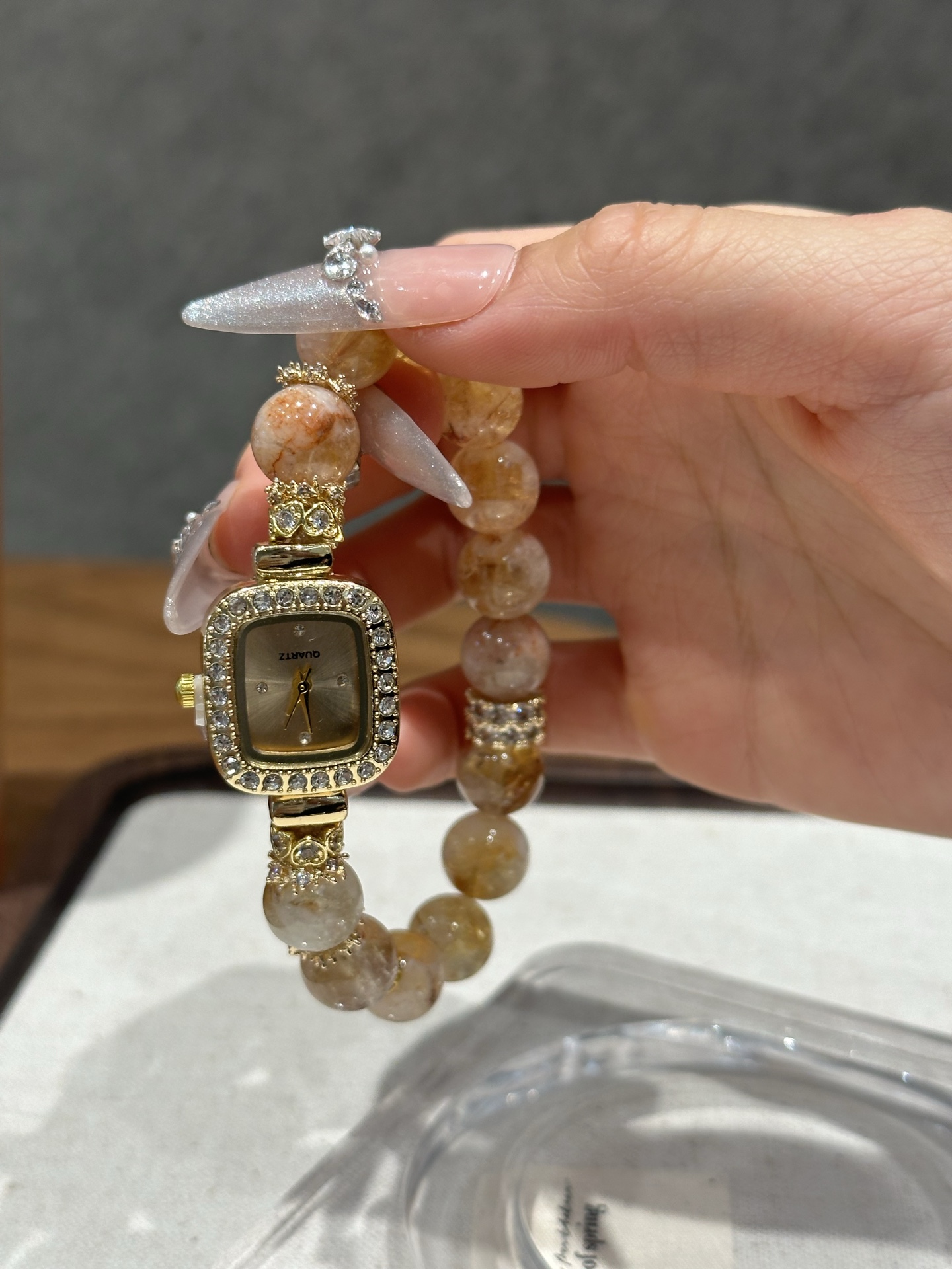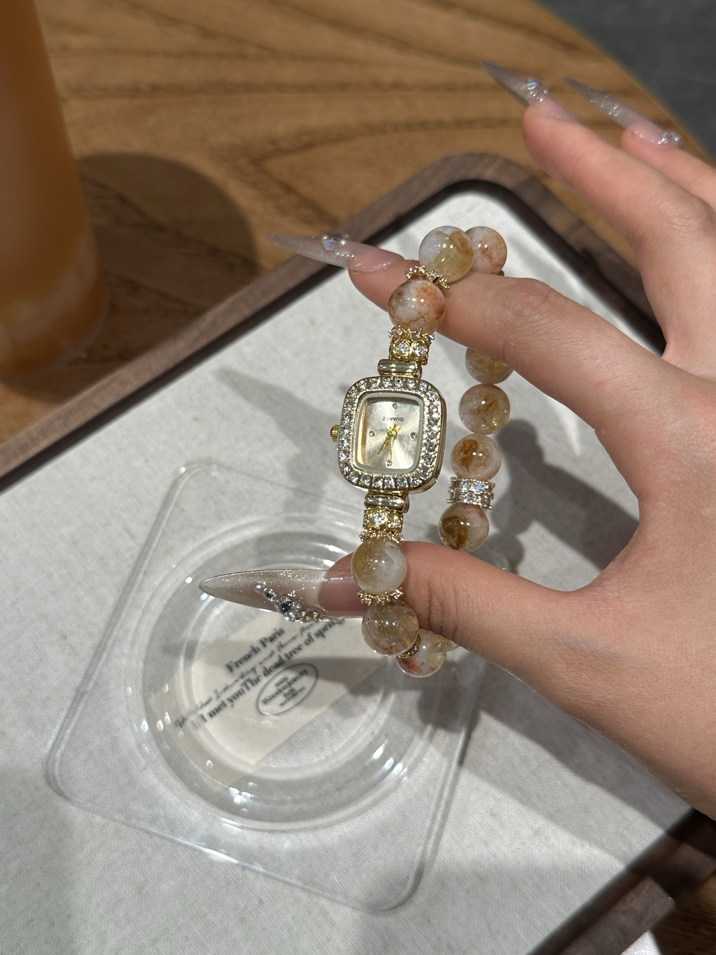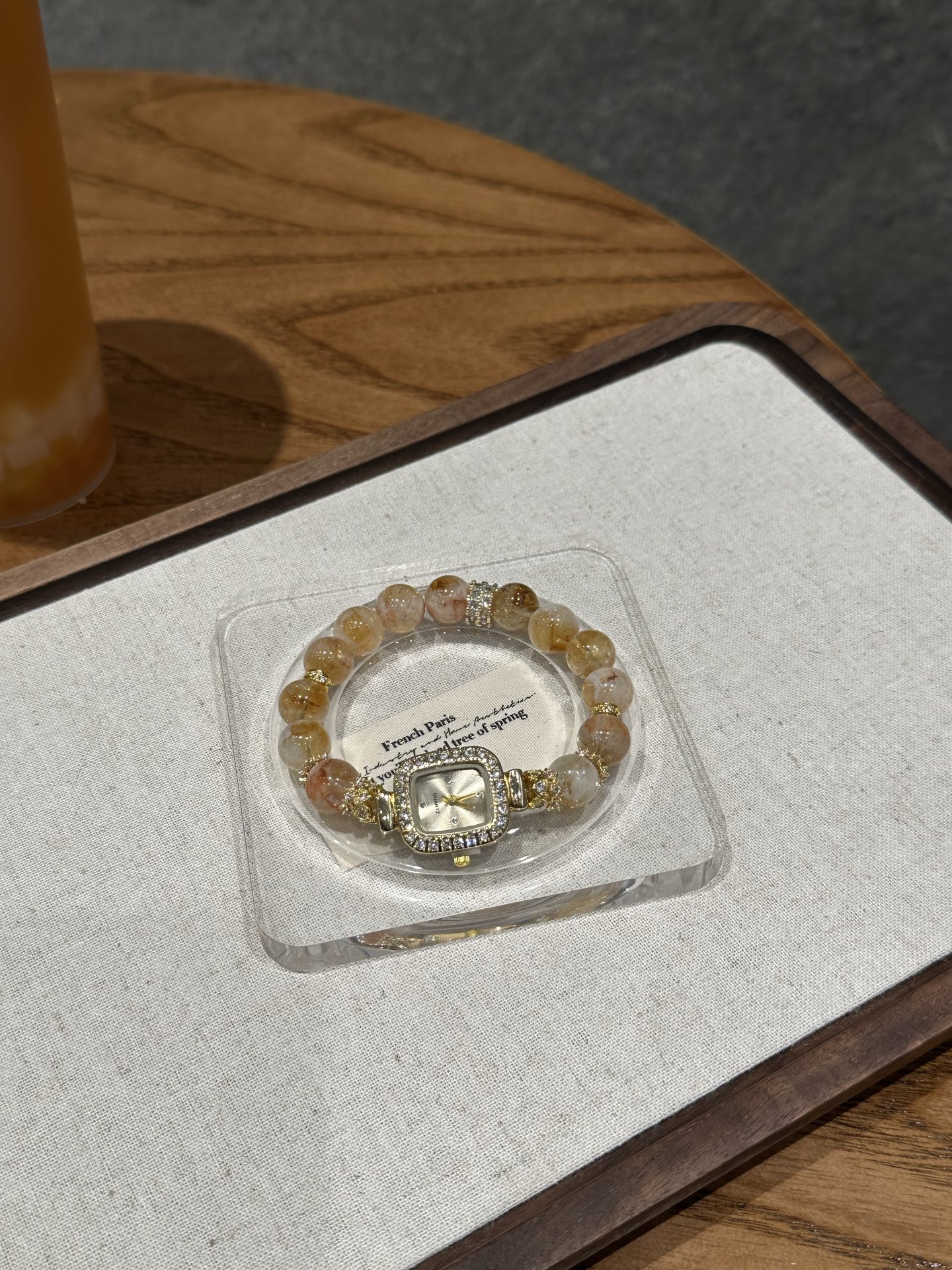 This bracelet uses high-quality crystals such as Designed with Honey milk cap, Yellow tower crystal, Silver jewelry and Watches.
