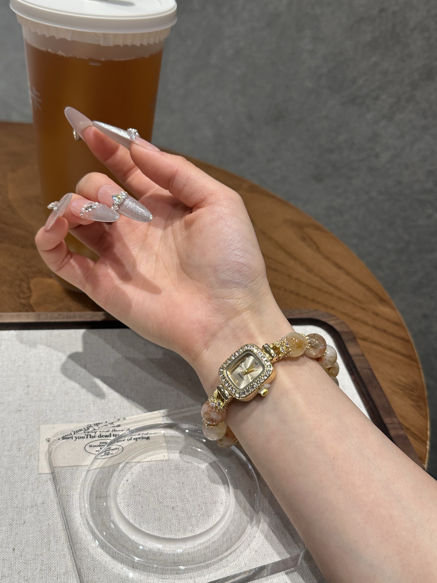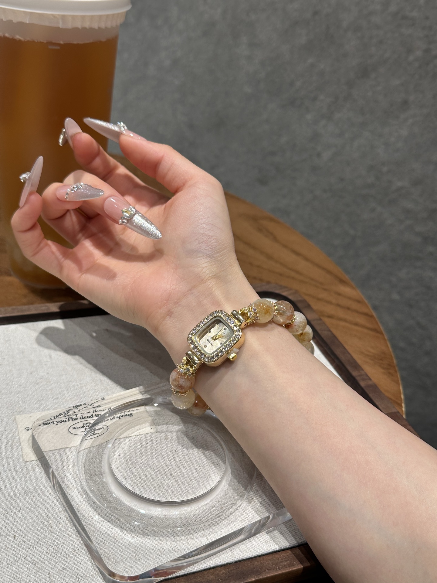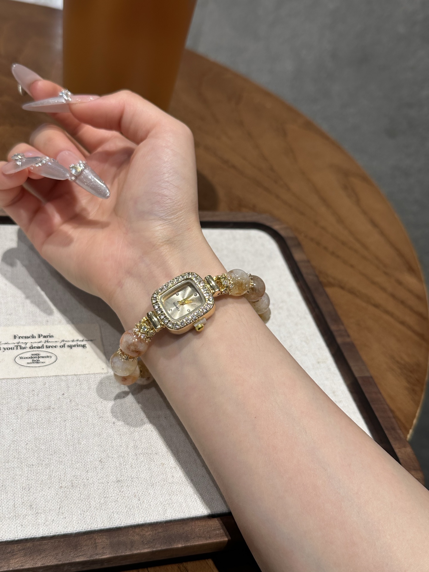 This bracelet uses high-quality crystals such as Designed with Honey milk cap, Yellow tower crystal, Silver jewelry and Watches.