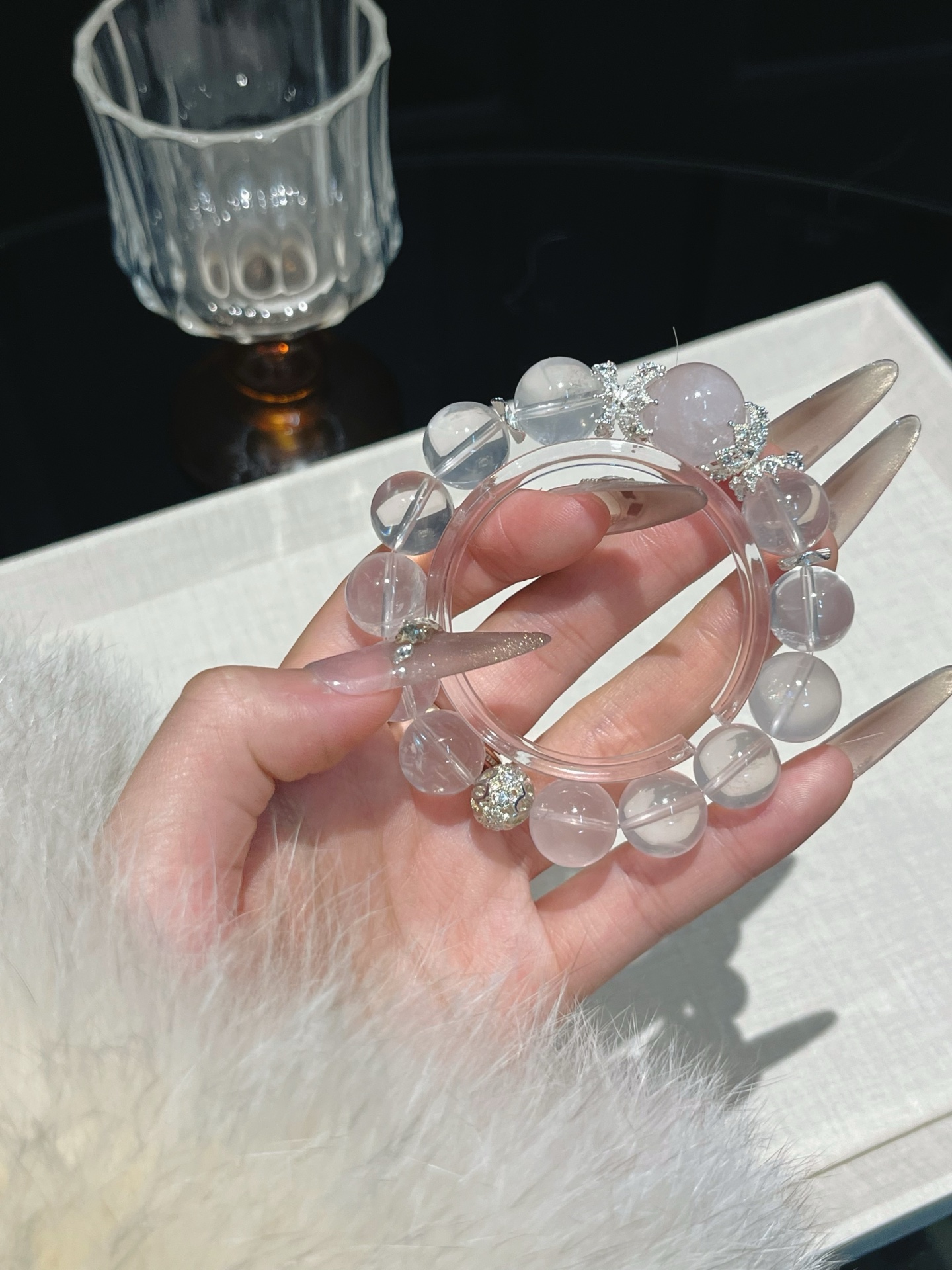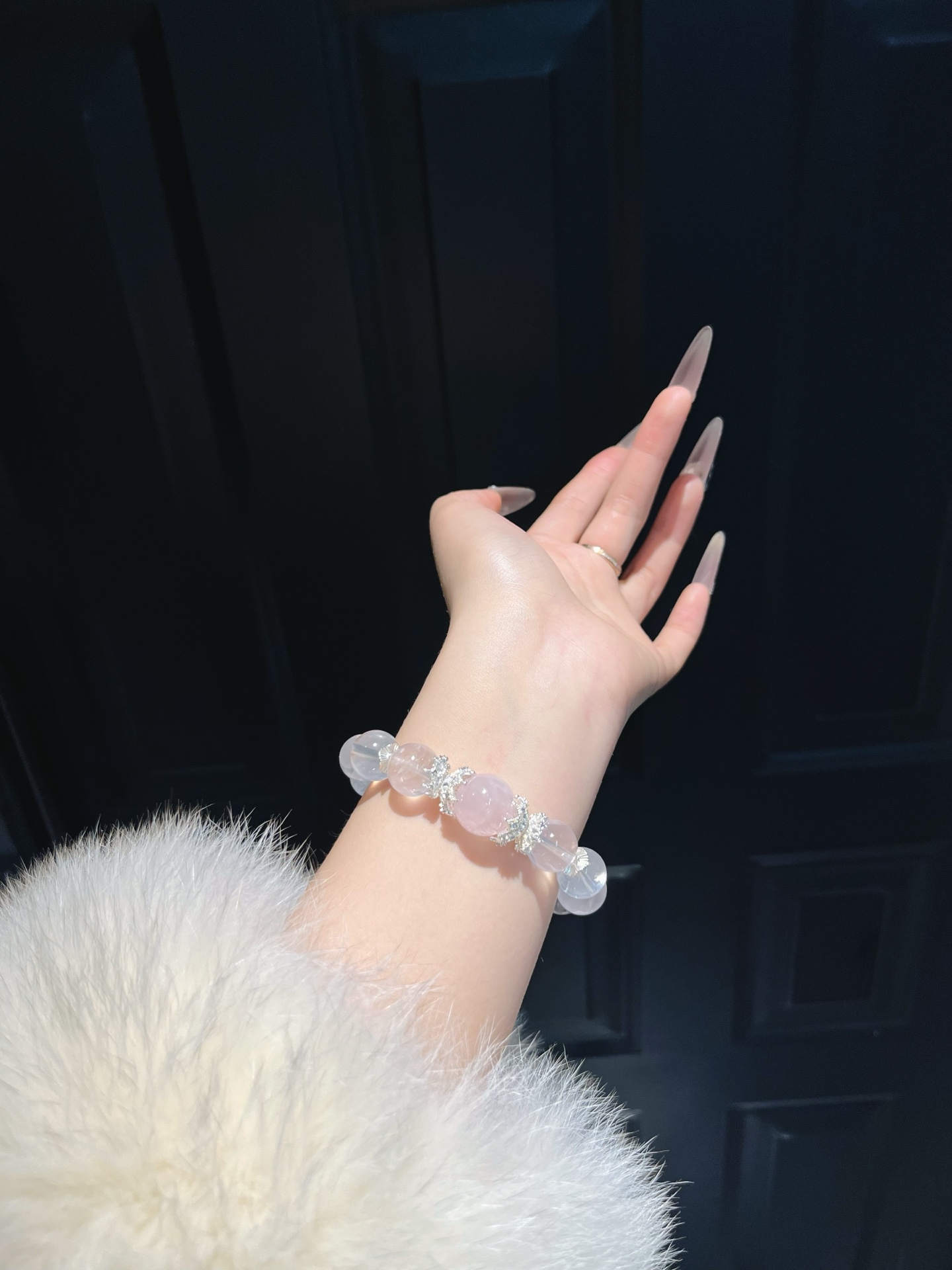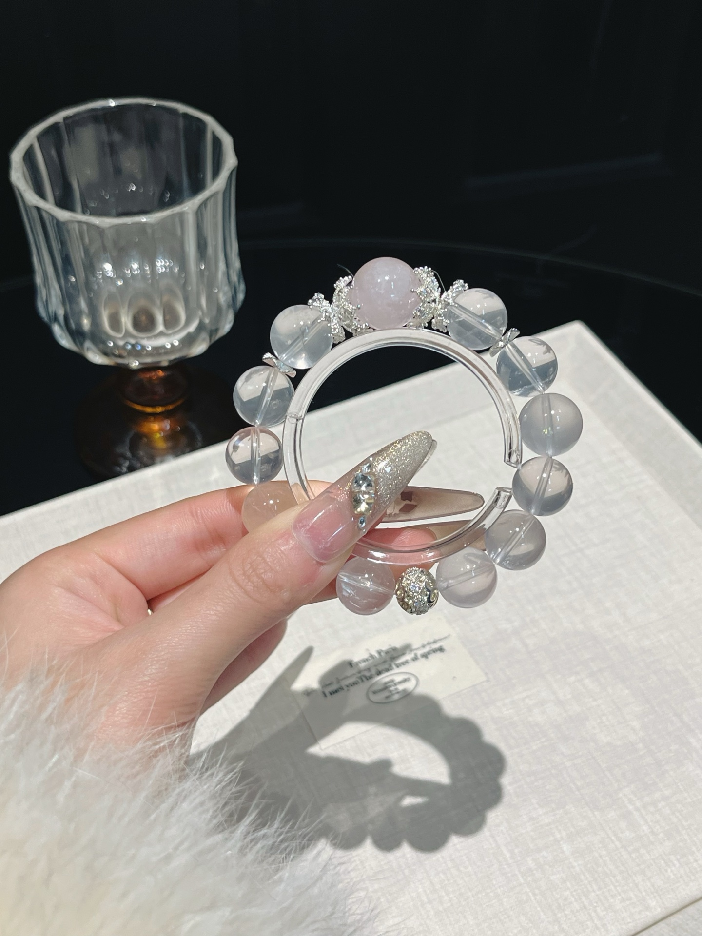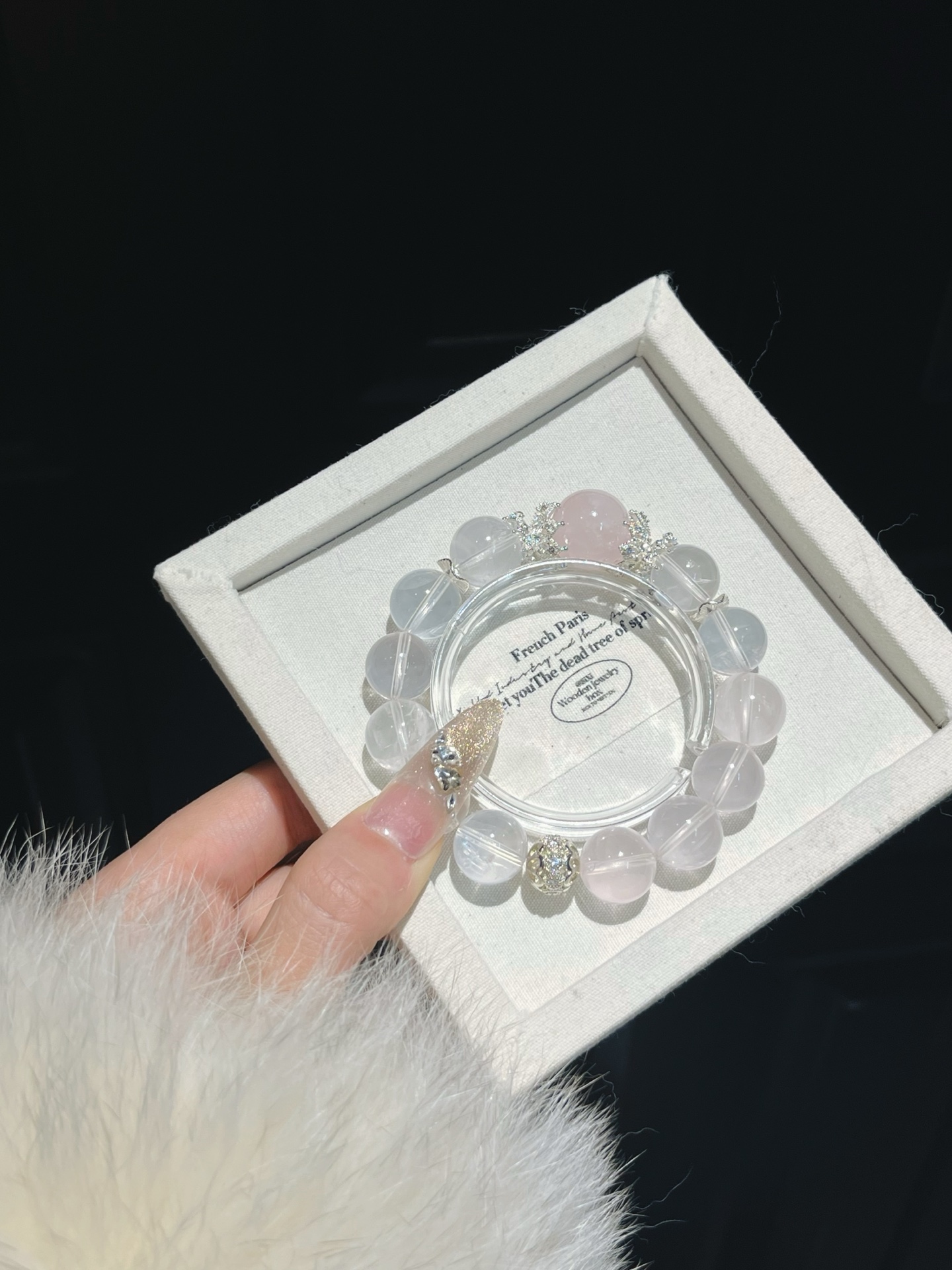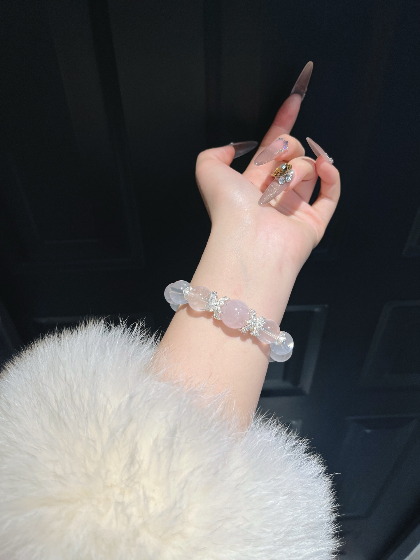 This bracelet uses high-quality crystals such as Designed with White crystal, Pink crystal and Silver jewelry.