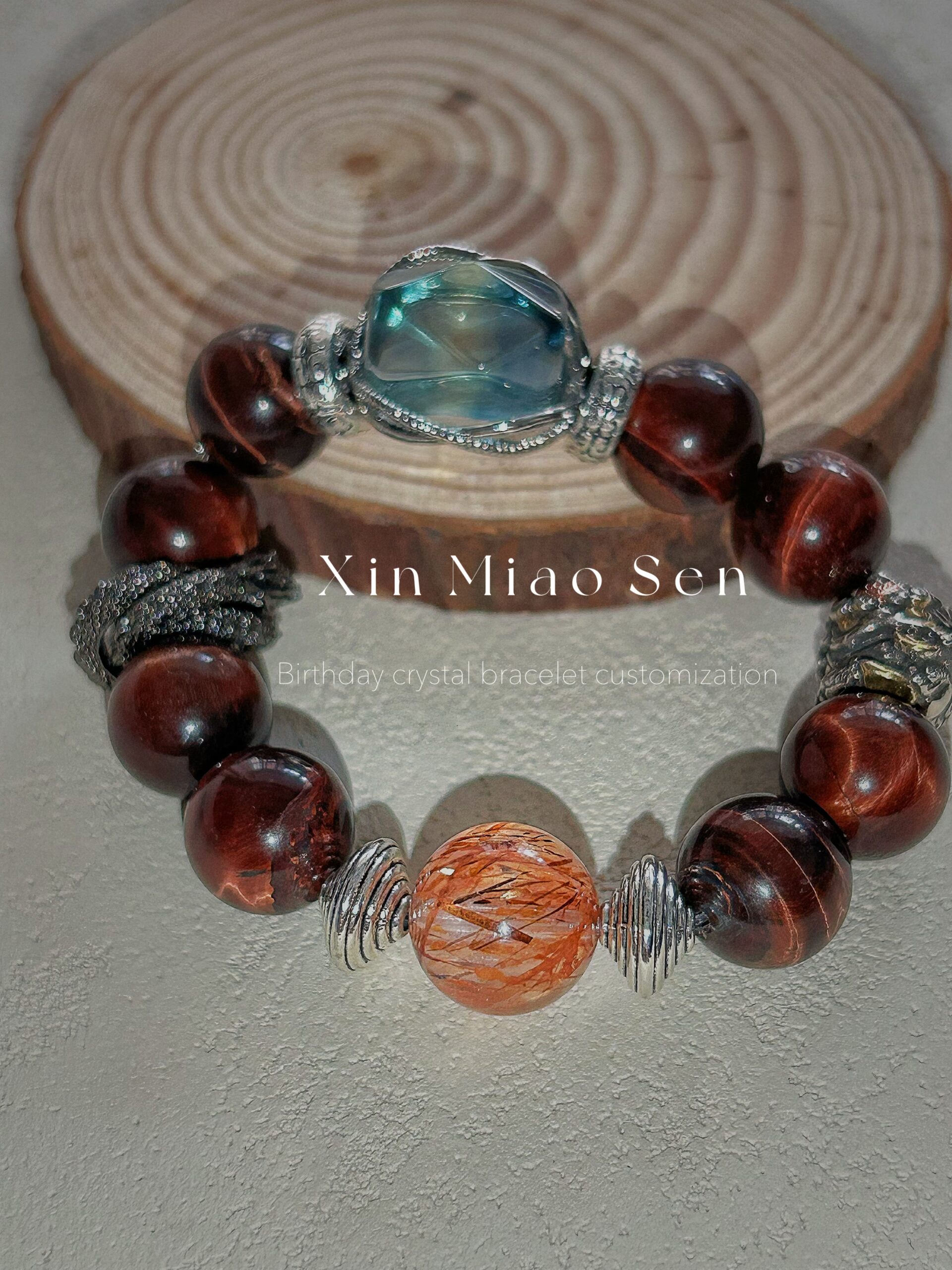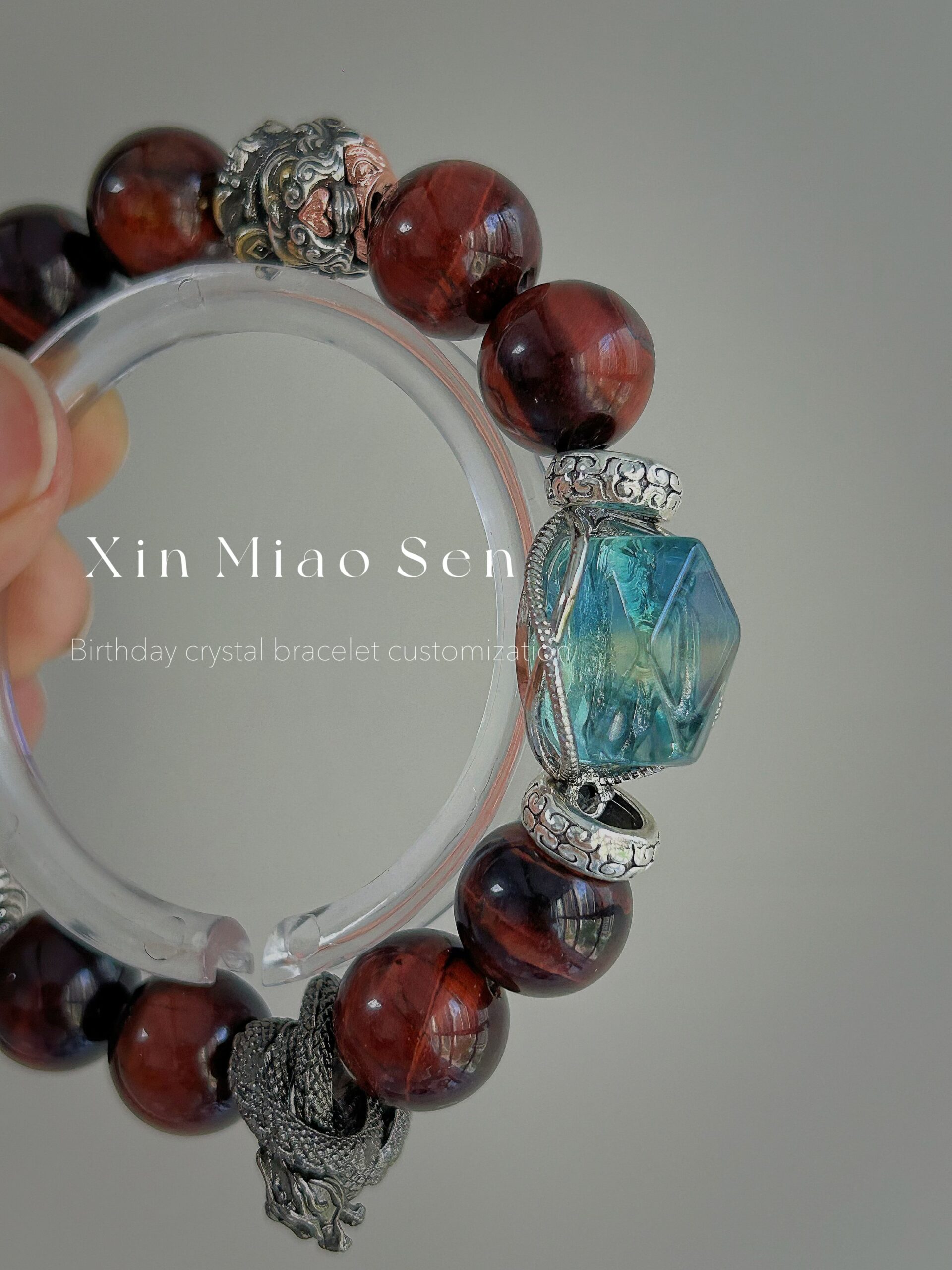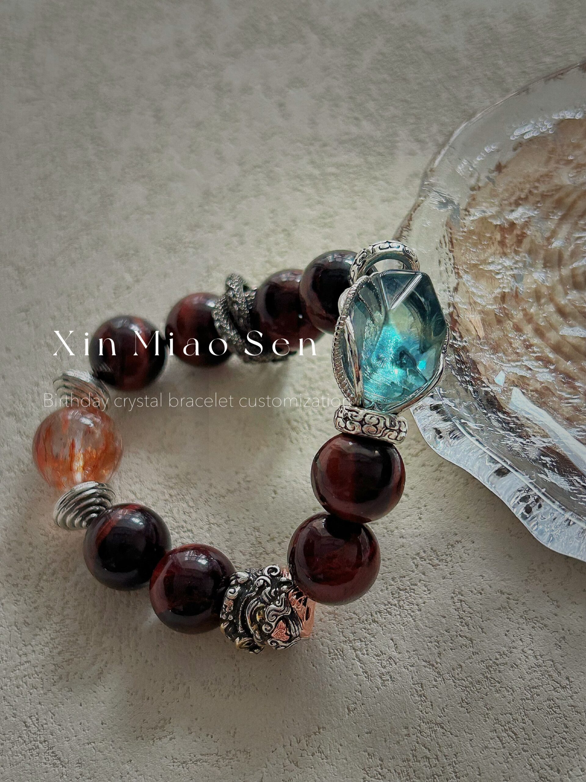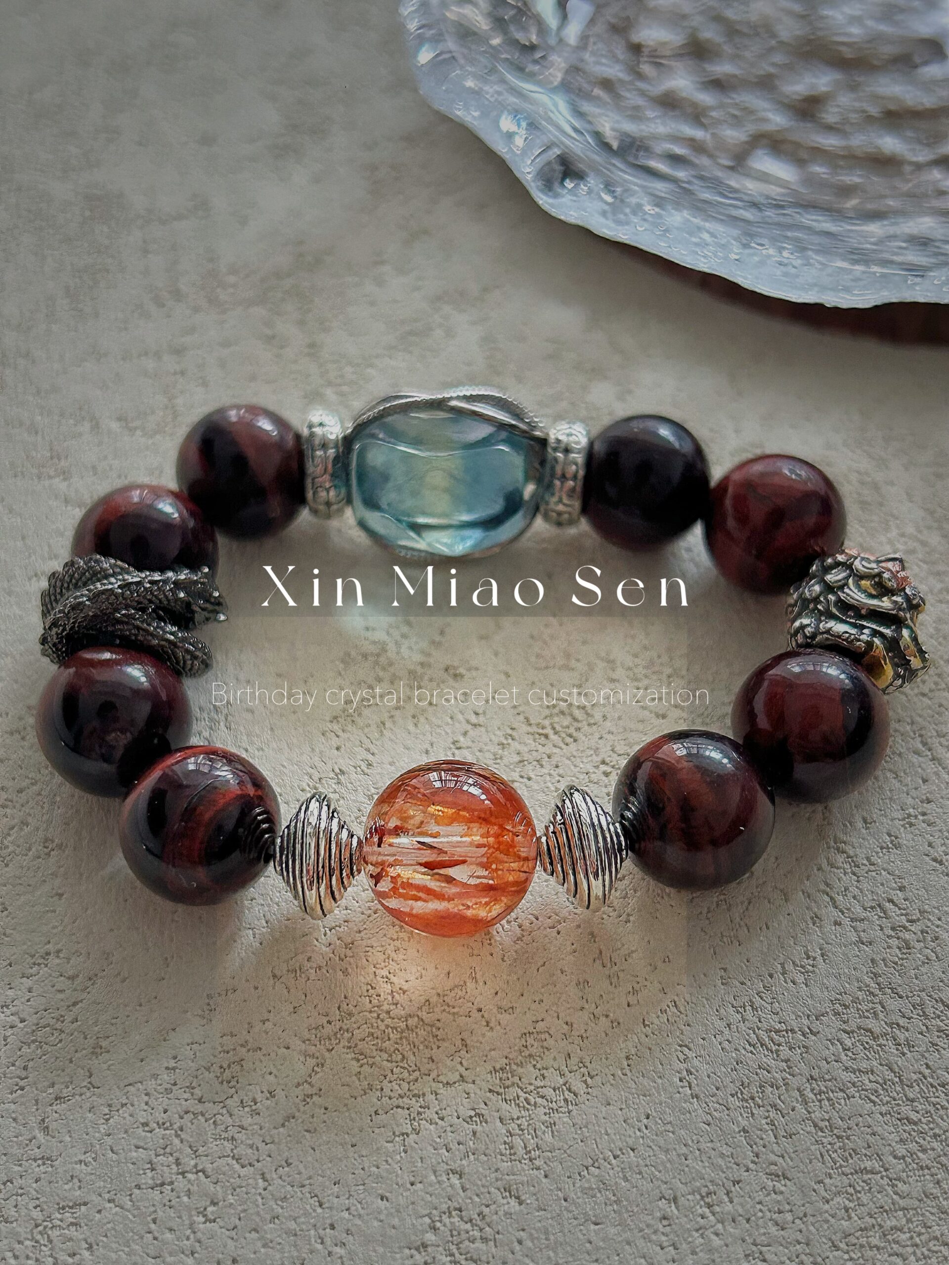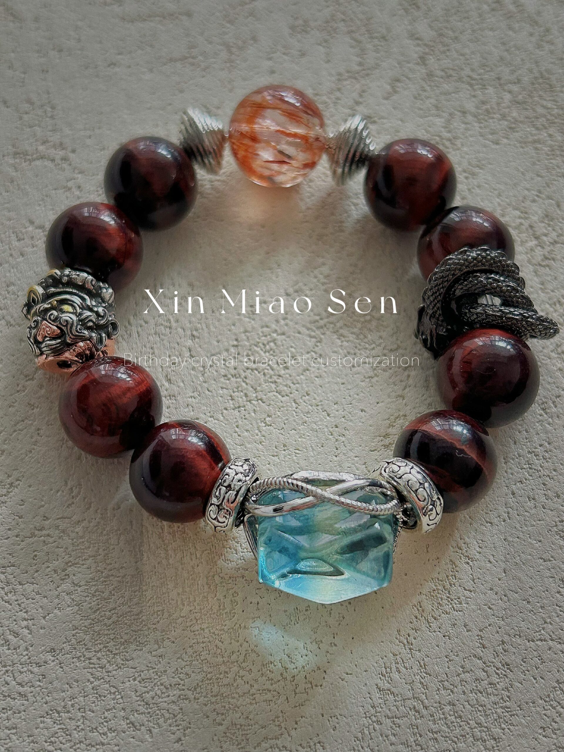 This bracelet uses high-quality crystals such as Designed with Aquamarine, red tiger’s eye, crystal, snake shape and Mars silver jewelry.