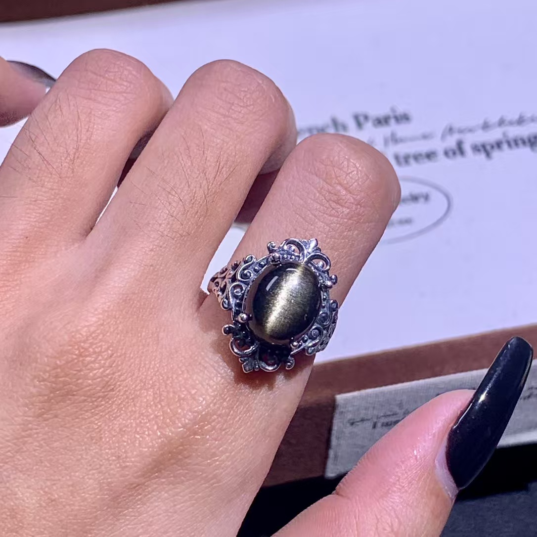 Home Crystal Accessories Crystal Ring S925 Sterling Silver Golden Obsidian Ring