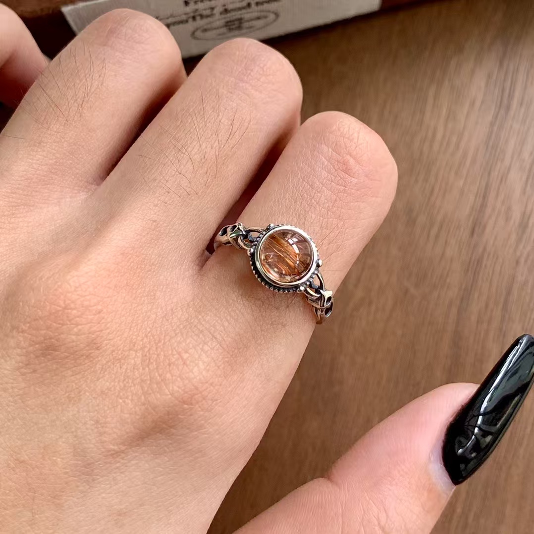 S925 Sterling Silver with Natrual Hair Crystal Ring