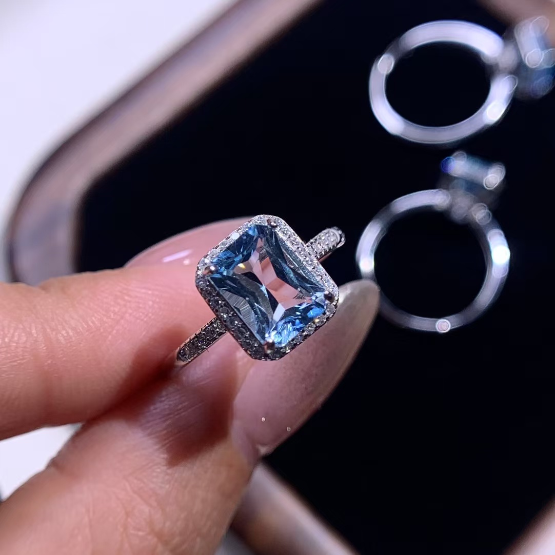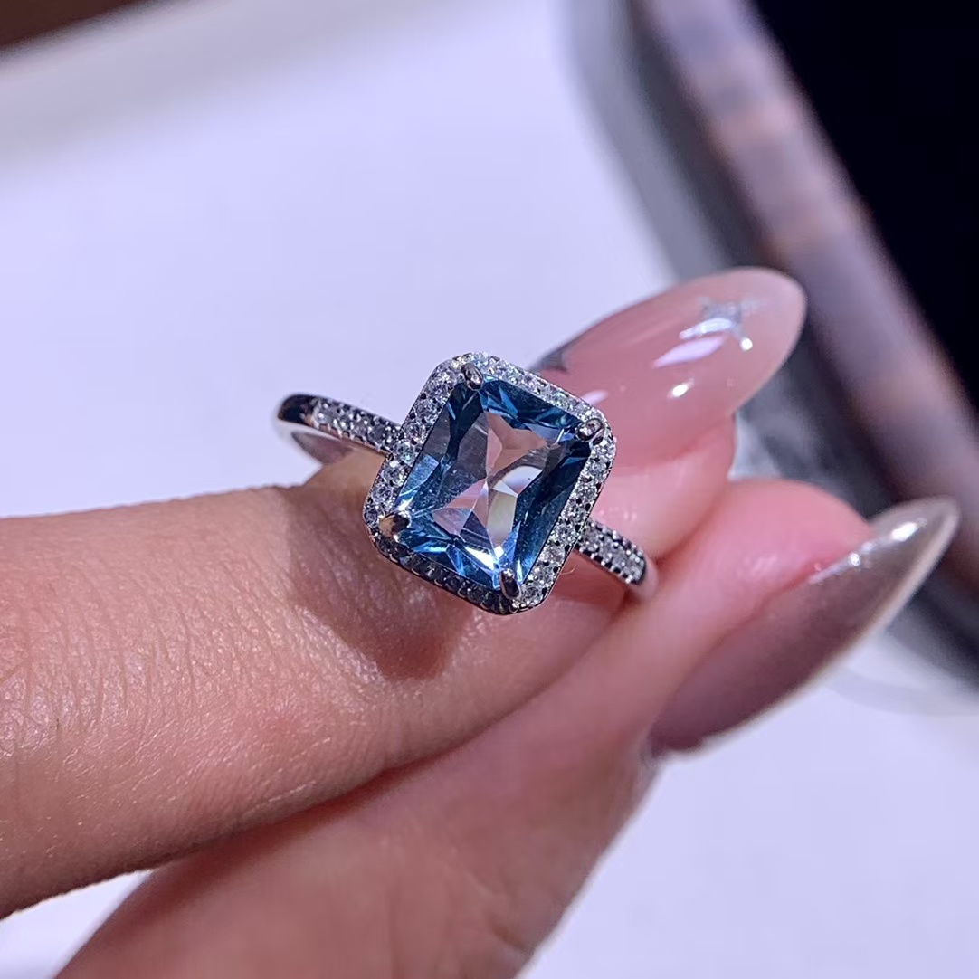 S925 Sterling Silver Natrual Sea Blue Treasure Ring
