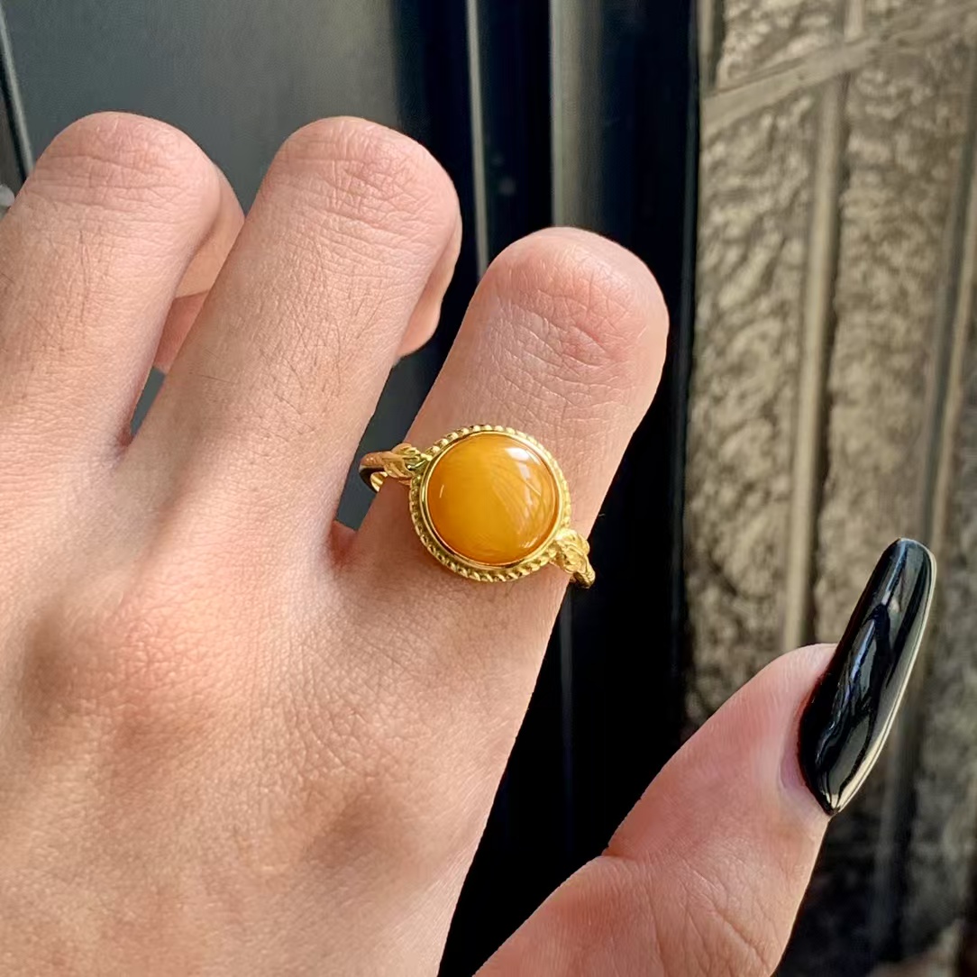 S925 Sterling Silver with Natural Yellow Crystal Ring