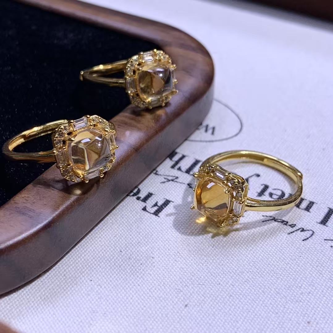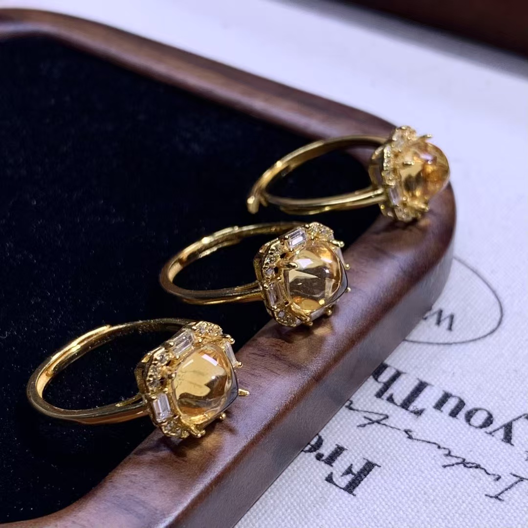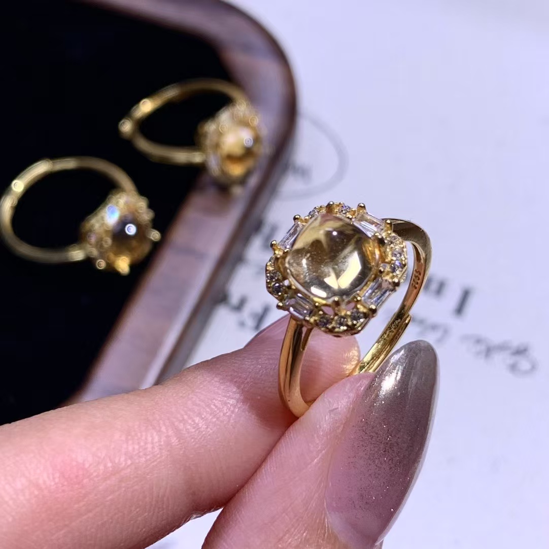 Home Crystal Accessories Crystal Ring S925 Sterling Silver with Natural Yellow Crystal Ring