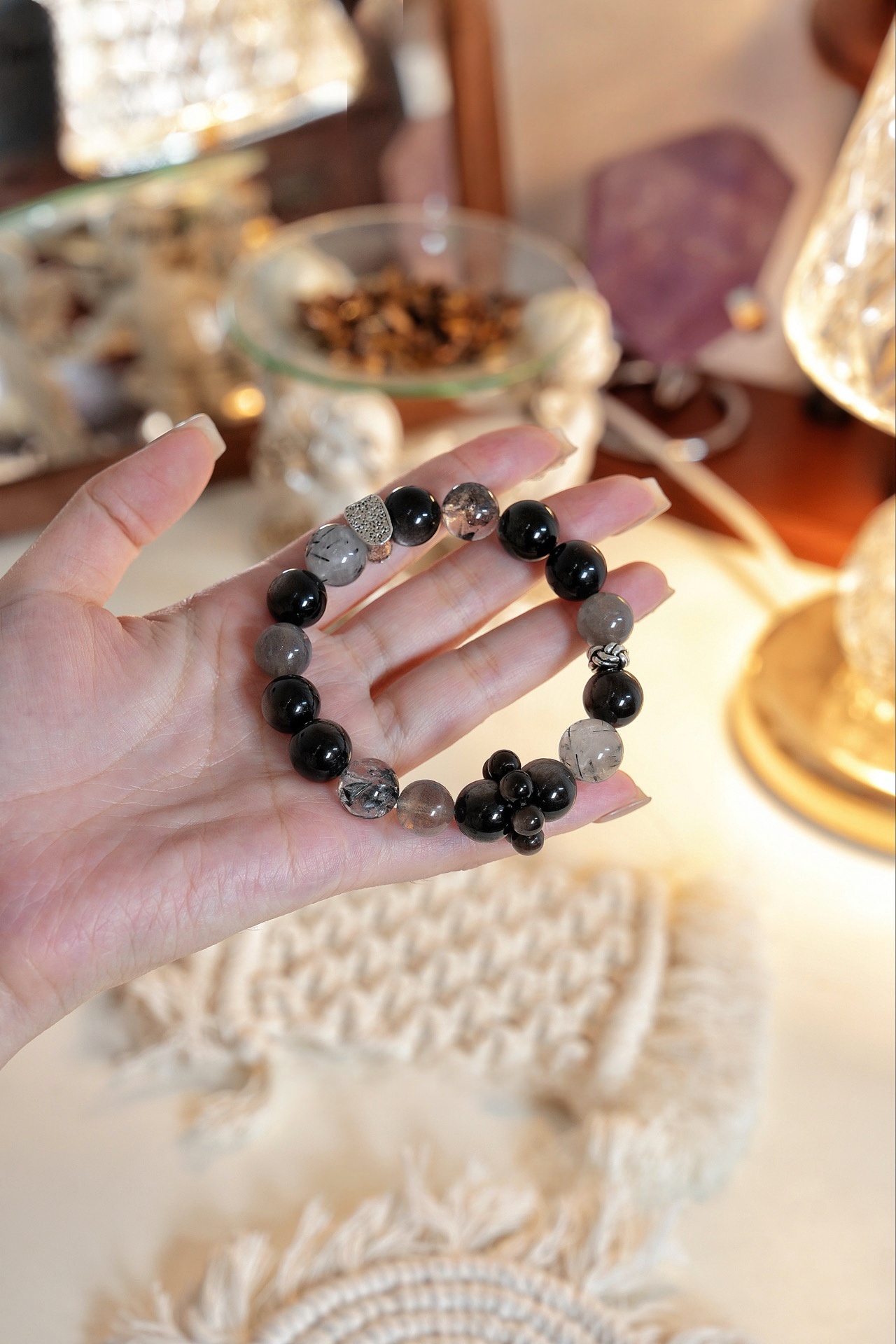 Home Crystal Jewelry Crystal Bracelet Five Elements Energy Crystal Silver Obsidian Selenite Starlight Original Design Bracelet