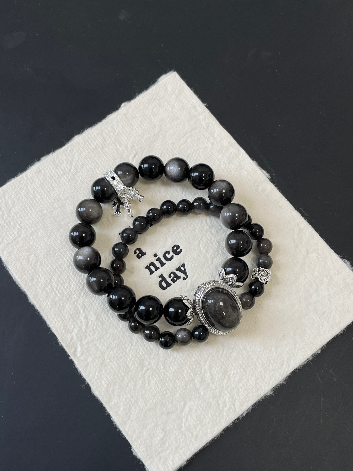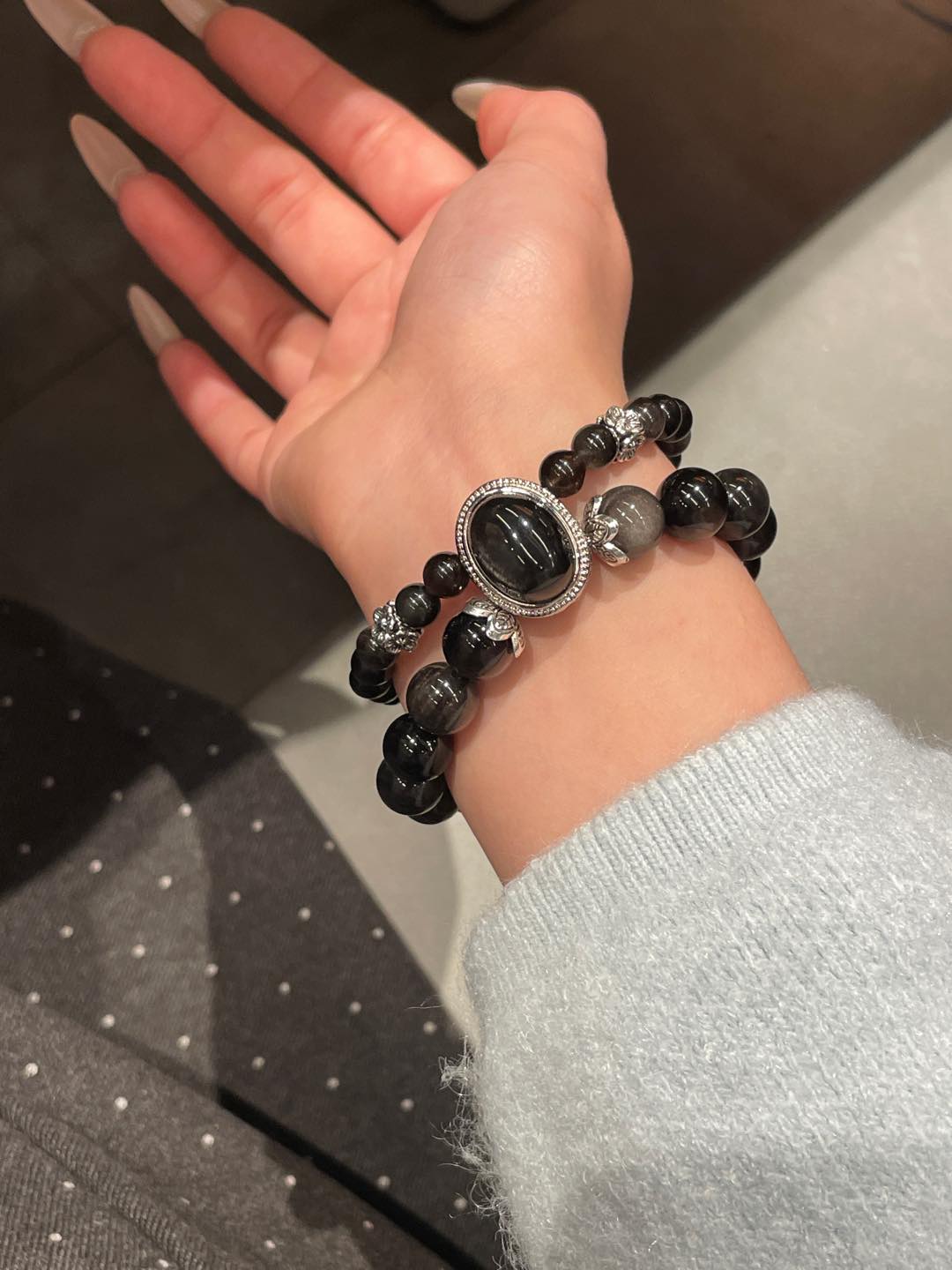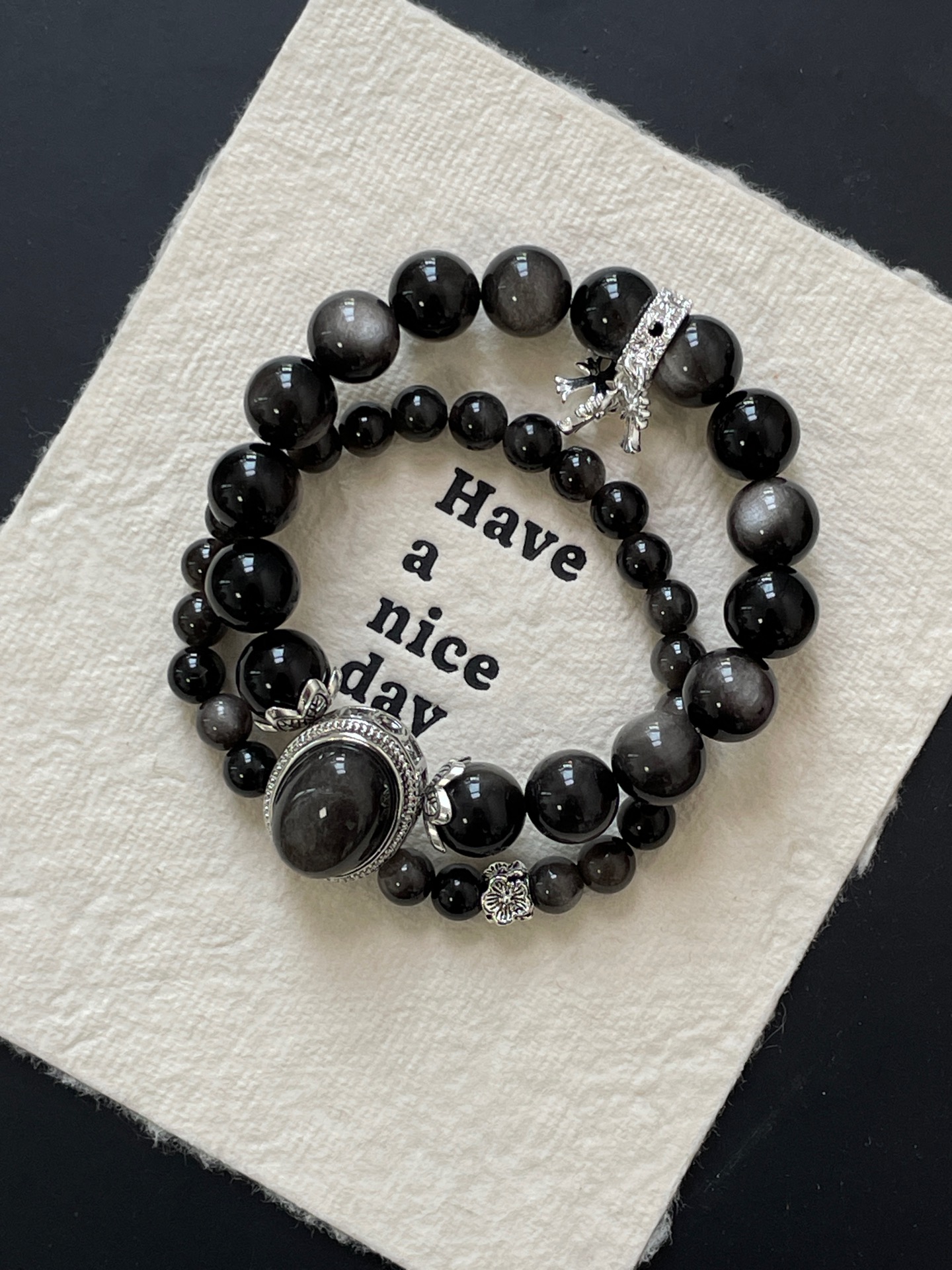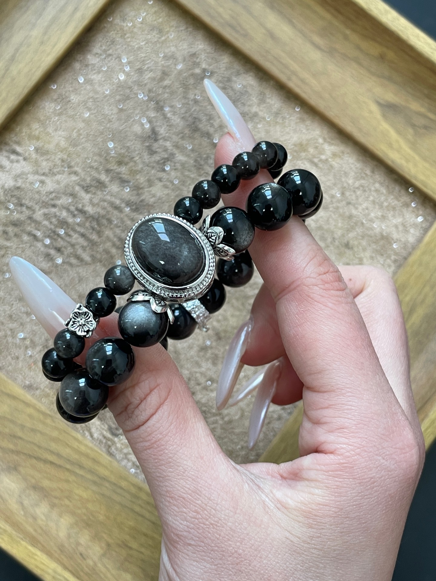 Silver Obsidian is believed to have a calming effect on the mind, relieving anxiety and stress, and can help people get rid of negative emotions and bring peace of mind.
