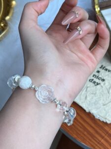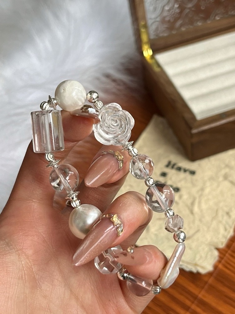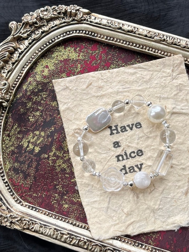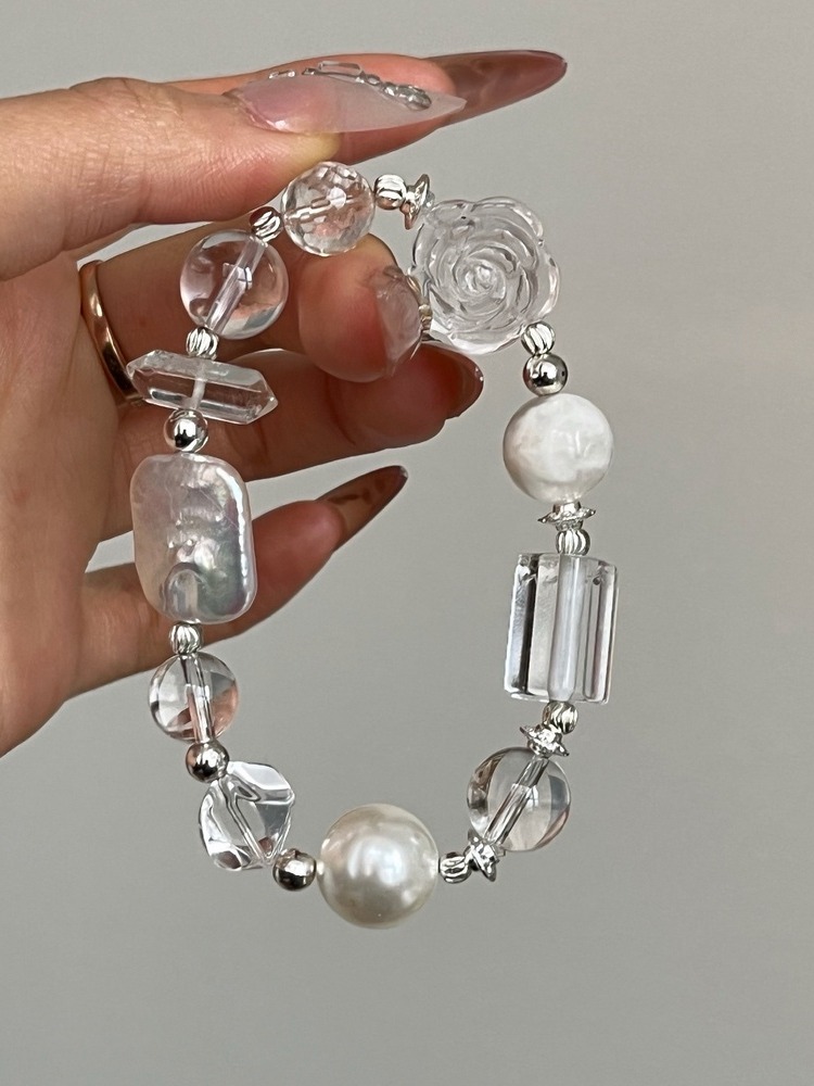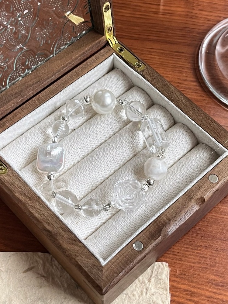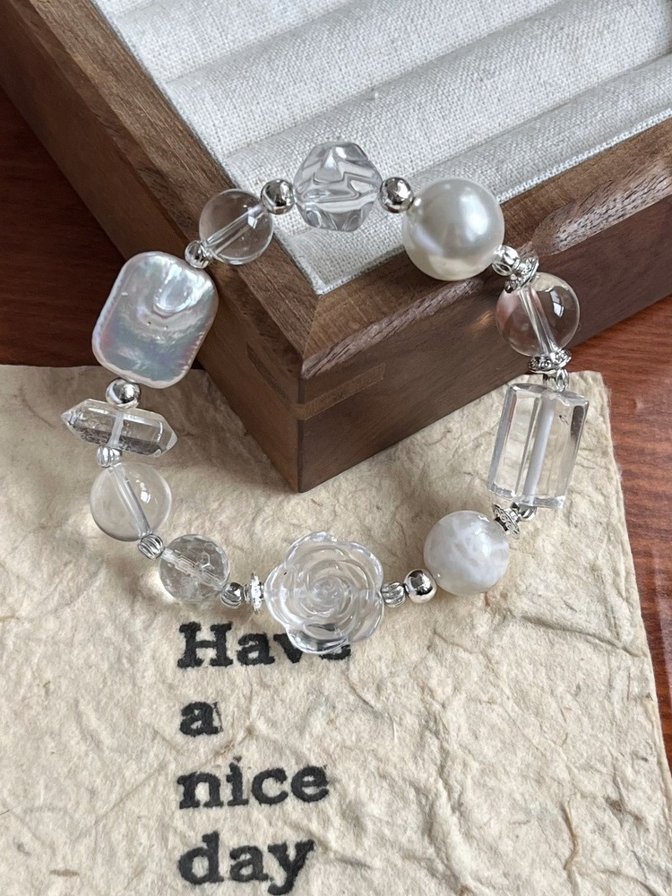 This bracelet uses high-quality crystals such as Designed with White crystal, Snowflake ghost, Pearl, Silver jewelry.